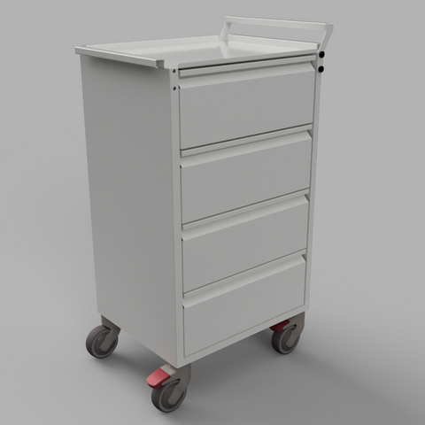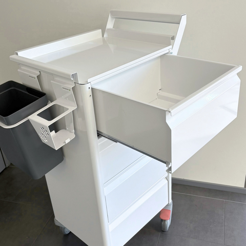 Compact and agile, the Linus Treatment Cart is designed for storing small treatment supplies used in patient care. Despite its small footprint, Linus offers impressive functionality and flexibility for various healthcare environments. The cart’s compact structure and lightweight design make it easy to manoeuvre, while the raised edges on all sides prevent items from sliding off during movement. Drawers are equipped with soft-closing mechanisms and stay securely closed when the cart is being moved. Made of painted aluminium and steel, Linus combines durability with a clean, professional appearance. It’s